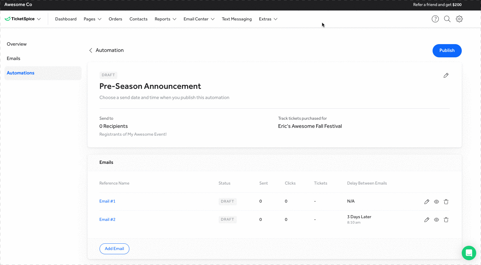 To make communicating with your attendees even more powerful, we’ve built a robust text messaging platform right in your TicketSpice account! 😱